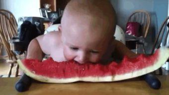 宝宝吃瓜的时候,总是先用手轻轻摸一摸瓜皮,好像在确认瓜的成熟度。他们的小手轻轻一剥,瓜皮就被剥得干干净净。这个过程,简直萌化人心。